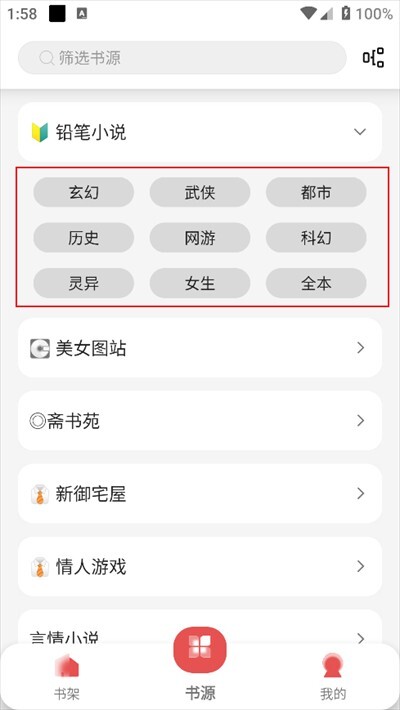 打开软件,点击书源。