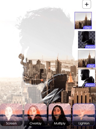 复制城市图层,该图层默认位于最顶层,接着对城市2图层添加混合效果,选择“变亮”效果就能完成操作。