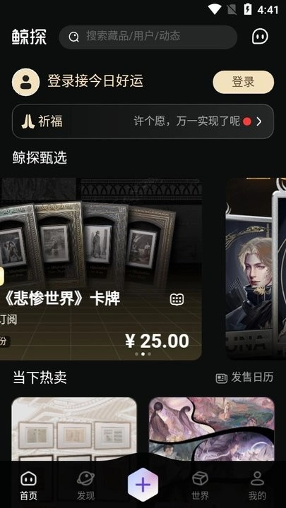 鲸探是一个为数字收藏爱好者打造的安全可靠交易平台,无论您是初入此道的新手,还是经验丰富的收藏达人,都能在此获取感兴趣的商品资讯。平台融合了藏品鉴赏与交易功能,让每位用户都能充分领略数字藏品的独特魅力。