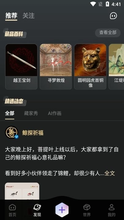 ·发现精选的动态,各种藏家秀、AI作画等;