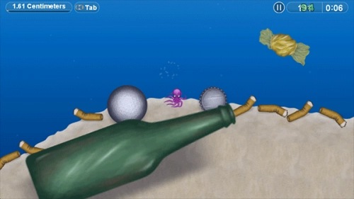 通过移动小章鱼进行吃垃圾,时间花的越少评价越高。