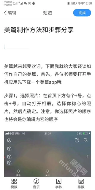 编辑完成后,可点击右上角的“预览”按钮查看效果。若想让作品更美观,预览界面下方会提供模板与排版选项,大家可根据自身需求进行选择,让文章更具吸引力。