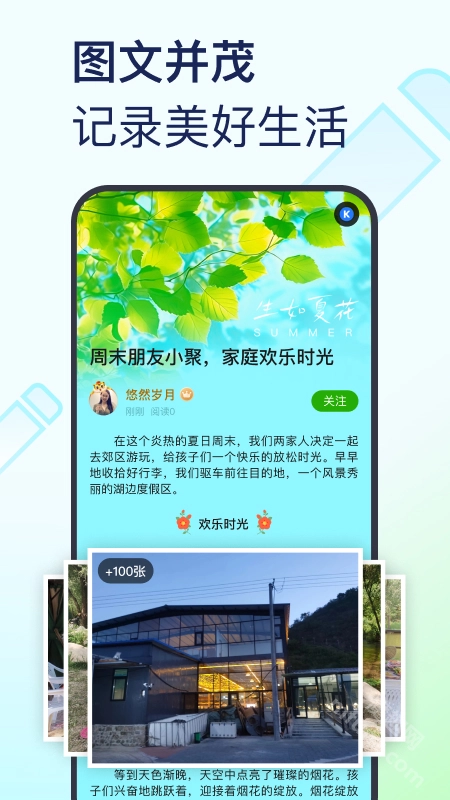 内容分享:用户能够把制作完成的美篇分享至微信朋友圈、QQ、微博等社交平台,和亲友一同分享自己的生活故事与精彩时刻。