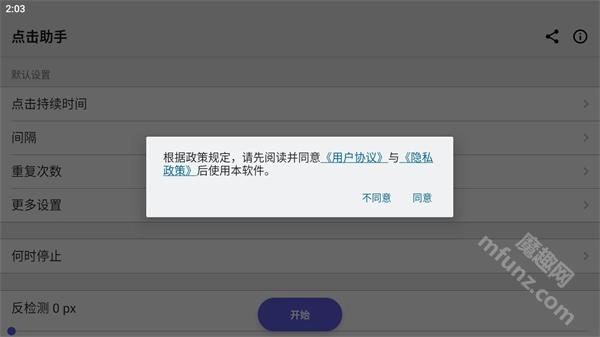 首先打开指定的应用,打开后会出现用户协议,需要用户点击同意。