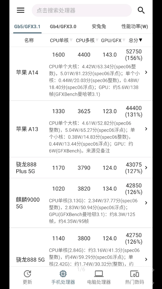 处理器性能:给出处理器的Geekbench单线程与多线程得分,以及GFXBench曼哈顿图形测试的帧率排名,助力用户知晓处理器的性能表现。