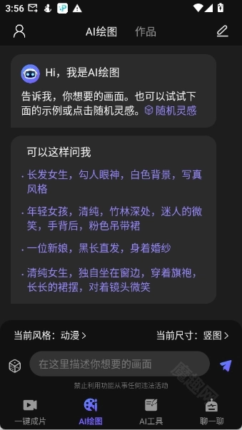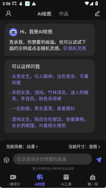 点击“AI绘画”功能,在编辑框中输入关键词,就能得到对应的图片。