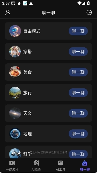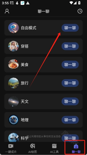当你无聊的时候选择“聊一聊”可以和AI机器人聊天