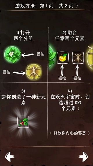 游戏里有157种元素等着玩家合成,越往后玩,组合起来越有难度,可选的搭配和玩法也会更丰富!游戏内设有虚拟金币,每次成功合成新元素时,都会出现和该元素相关的名人名言;使用提示功能会消耗金币;合成元素成功同样要消耗一定数量的金币;你还能去试试恶魔老虎机的手气,不过只有当图标组合出现[邪恶]时,金币才会增加。快加入涂鸦恶魔的阵营吧!尽量去摧毁一切,让宇宙万物维持平衡,我们也会陆续添加新的元素。