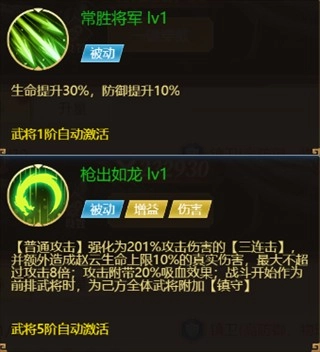 被动技能:常胜将军、枪出如龙
