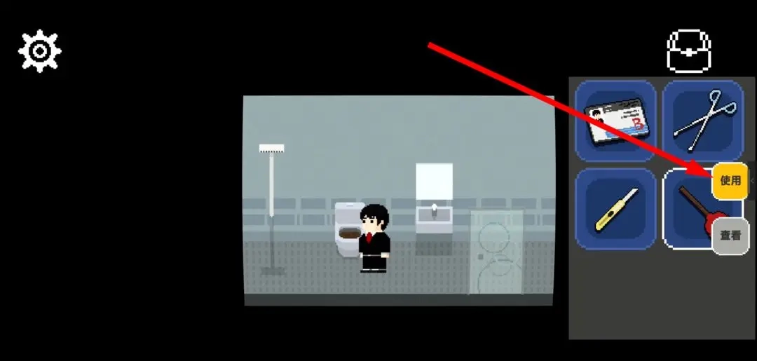 在马桶旁边用【垃圾夹子】,能拿到一张写着密码的纸条,上面的密码是8423。