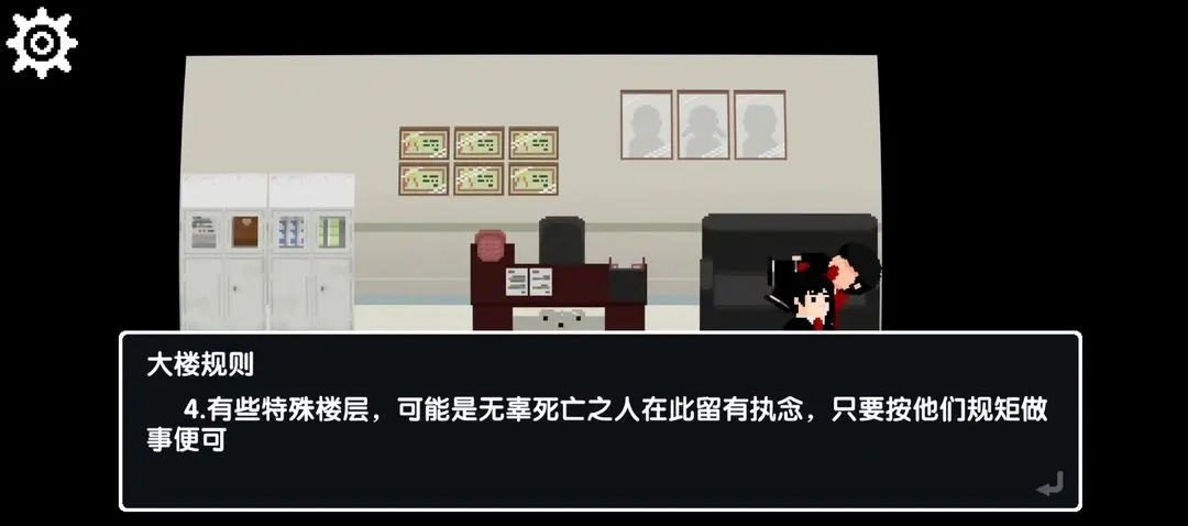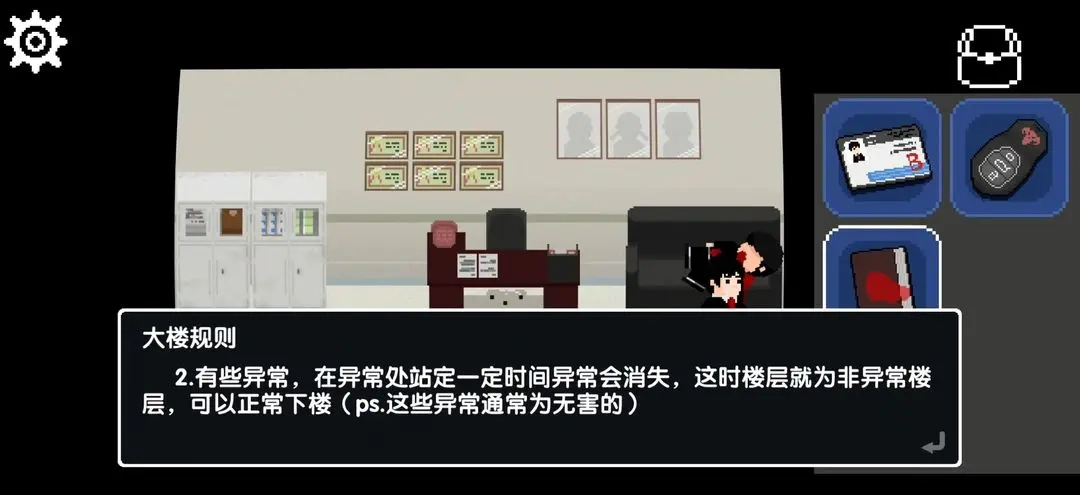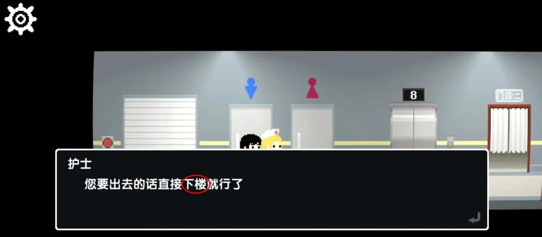 进入后能和作者交流,获取相关情报;观看广告支持作者后,就可以点击红色按钮下楼,下楼后会回到医院,此时楼层数会减少1层。