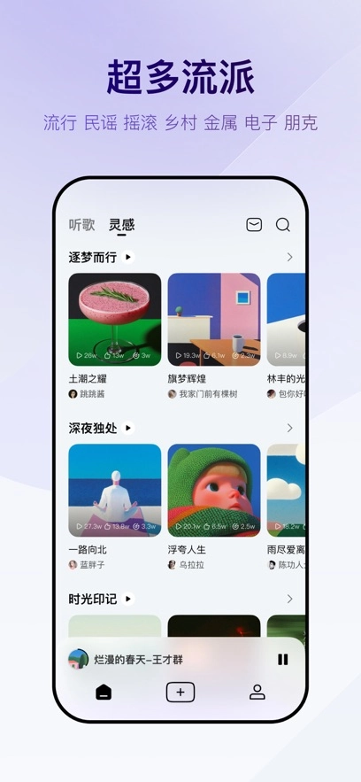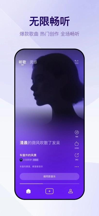 流行、摇滚、爵士、电子等多元风格能实现快速切换,AI音乐社区,创作的作品可以即时分享并上榜。