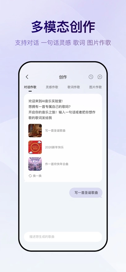 多模态输入:可通过文字灵感、歌词、图片等多种形式来触发创作;
