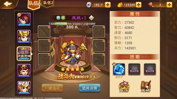《三国演义吞噬无界》2026最新版本是一款延续经典FC风格的回合制RPG游戏。游戏画面采用清新明亮的设计风格,角色造型Q萌可爱,搭配卡通化的地图场景与武将形象,打造出极具吸引力的视觉感受。剧情上既忠实还原历史史实,又融入了部分改编内容,同时新增了丰富的支线任务与副本玩法。玩家可以招募各路名将,通过排兵布阵体验热血战斗,在胜利后收集武将碎片合成将领,并对其进行升级、进阶等培养操作。后续还能收集材料让武将觉醒,以此大幅提升整体战力。 需要注意的是,仅依靠武将的个人能力无法应对所有挑战,合理的阵容搭配才是关键。每位玩家需组建一支由一名军师和四名将军组成的队伍:将军的核心属性涵盖武力、速度、耐力与兵力,同时要留意其技能效果,以此增强队伍的输出与防御能力;而军师则更侧重智力、策略与速度属性,这些数值越高,对战场局势的掌控力就越强。