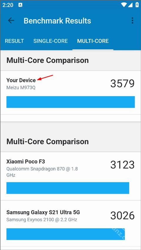 打开多核性能比较,查看手机与其他品牌性能对比。