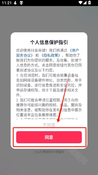 并打开抖音商城,点击“同意”