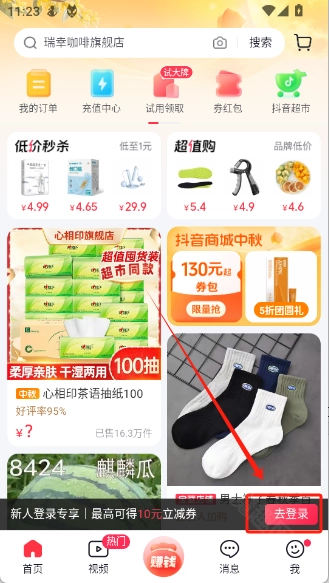 点击“去登录”登录你的抖音商城账号