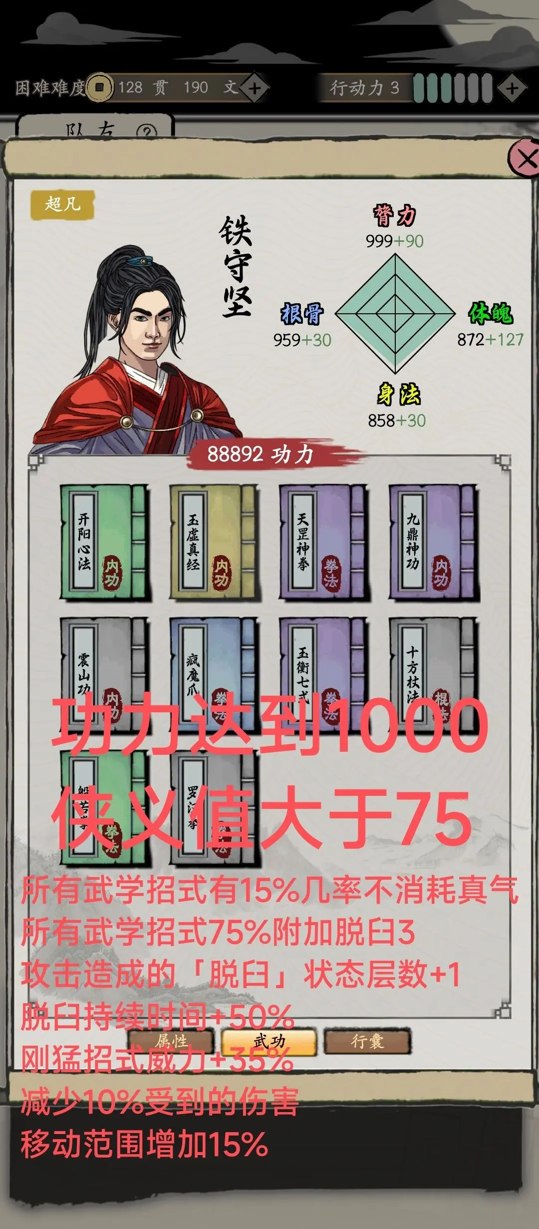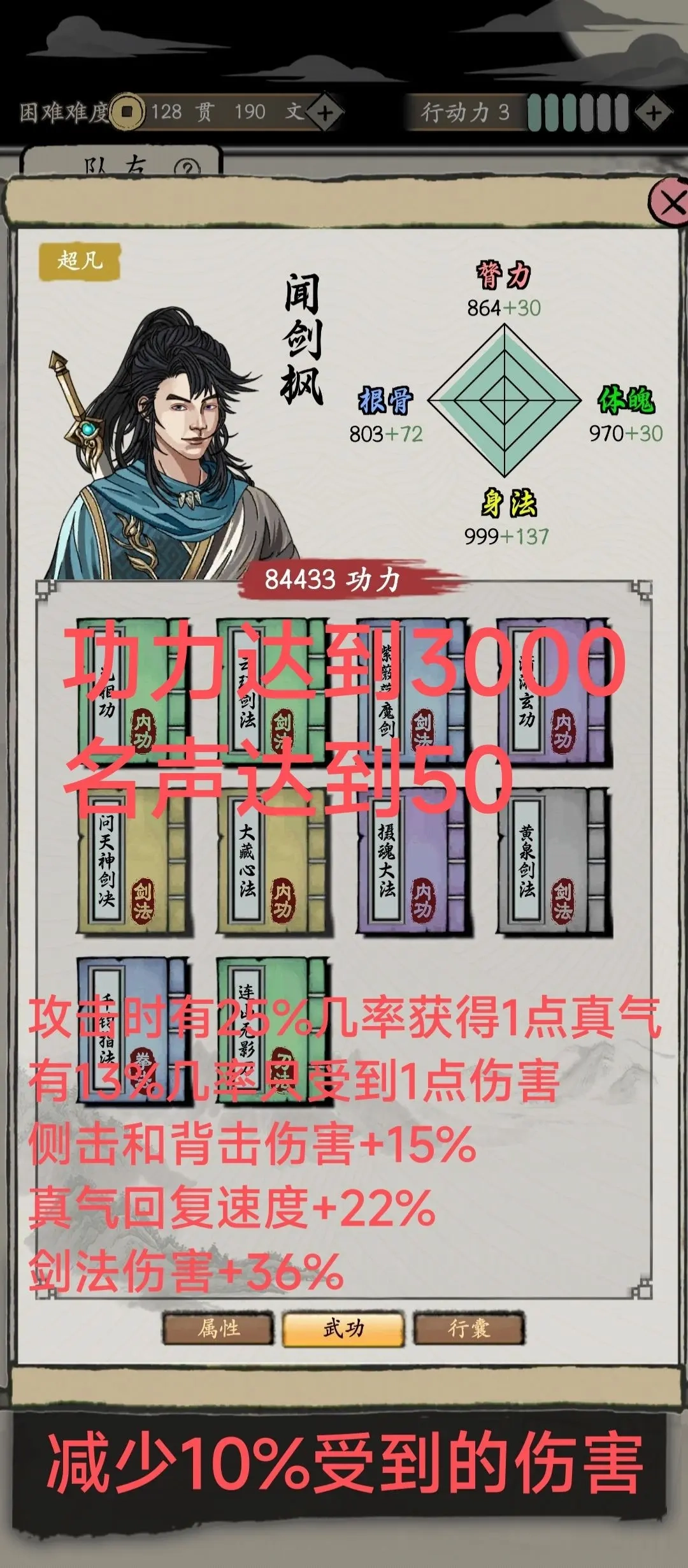 玄阴词条(所有武学招式有35%几率不消耗真气)