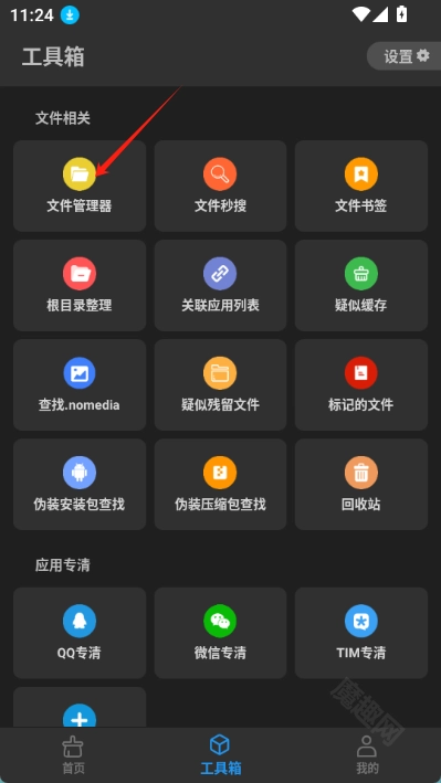 在工具箱里找到“文件管理器”并点击它,这样就能进入文件管理界面了。