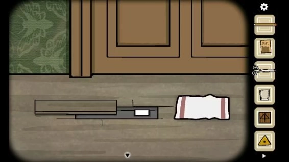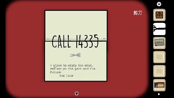 点击打字机输入英文后,会出现一张纸。用剪刀将这张纸剪开,接着移动下方的纸张使其与上方的部分叠加,就能得到提示数字「14335」。之后点击电话,输入14335,便会收到提示——让我们去查看钥匙孔。