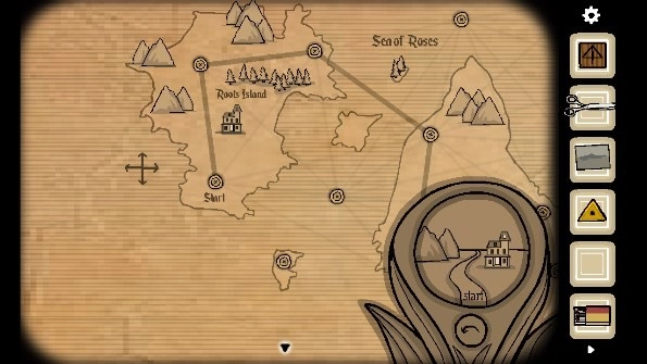 按照提示规划好行进路线,完成这一步后打开地球仪。接着依据三个瓶子上的提示,把火柴点燃并放入第三个瓶子里,打破瓶子就能得到「钩子」。之后用剪刀从花盆里剪下一段「树枝」,再将叶子放进第二个瓶子中。