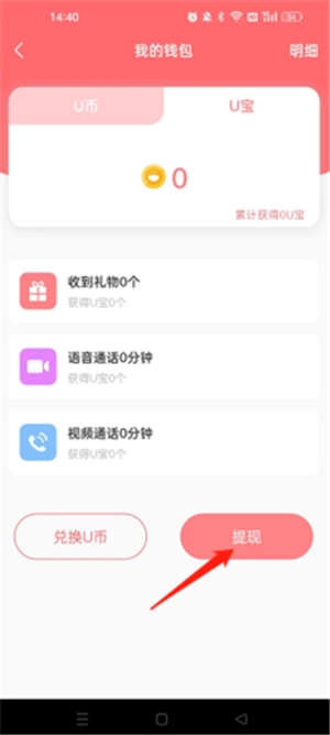 在U宝界面点击提现按钮。