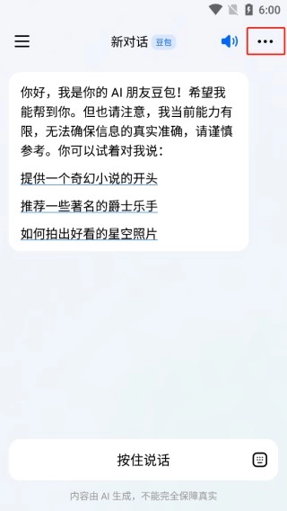 在新对话页面点击右上方三个点