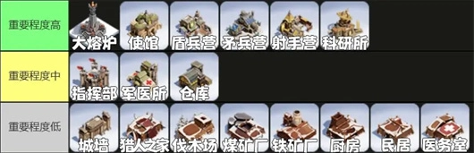 指挥部:影响集结部队带兵数量以及个人出征兵力容量的建筑,能让我们携带更多士兵,这有助于在战斗中占据更大优势,该建筑也属于需要优先升级的建筑类型之一。