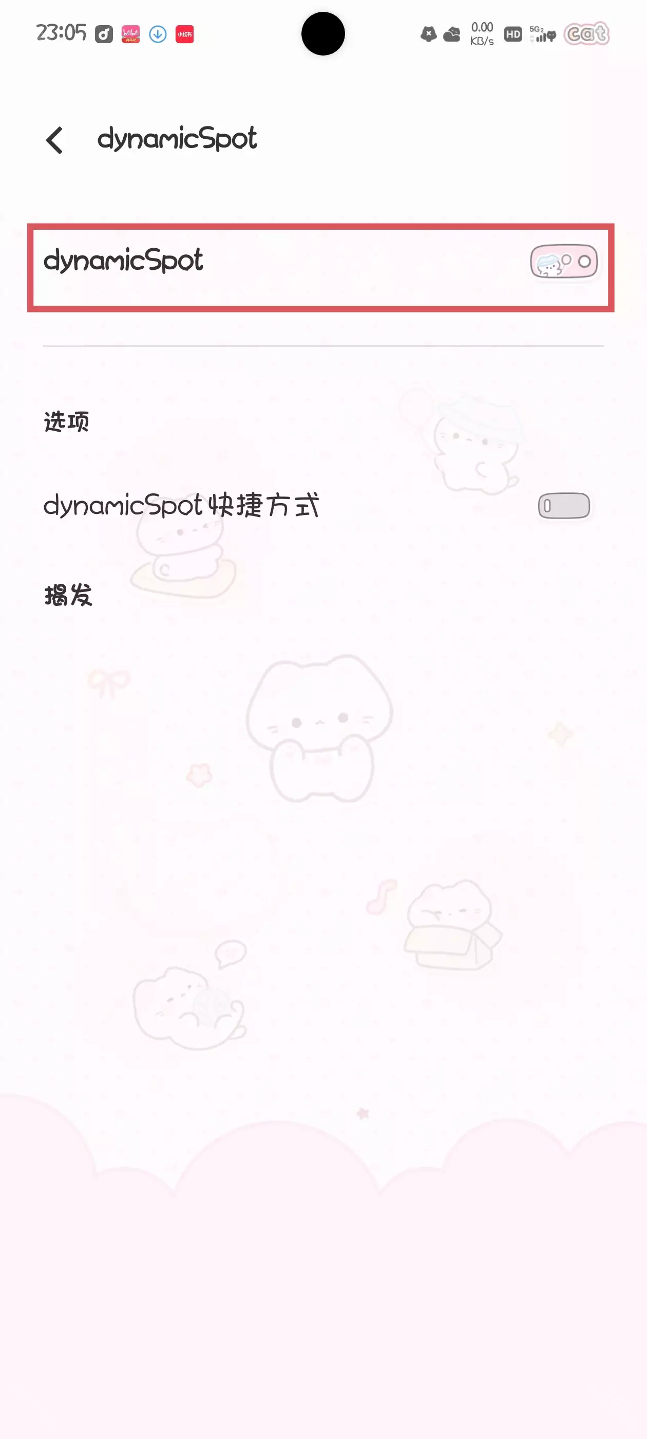 找到无障碍选项,进入已服务页面,找到DynamicSpot,将第一个开关开启。
