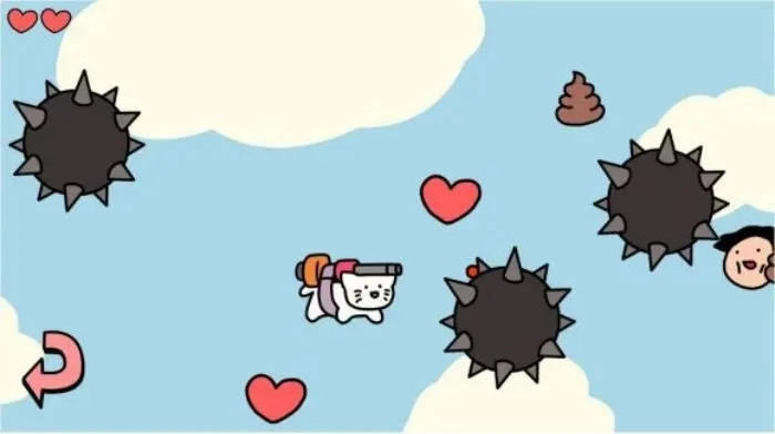点击手机上的小猫图标就能进入这款小游戏,它属于横版飞行射击类型。