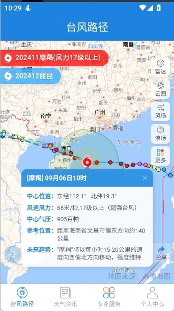 实时台风路径功能可实时追踪台风走向,用户能随时查看台风的未来移动预测。该软件通过获取最新发布的台风路径数据,帮助用户及时掌握台风的实时动态,以便提前开展安全预警与防范工作。