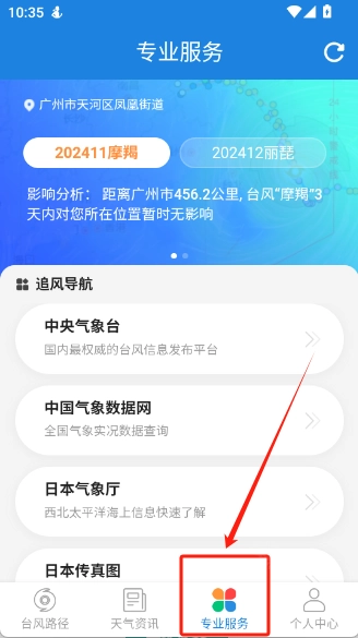 在“专业服务”模块里,还能查看中央气象台、中国气象数据网等多个频道的内容。