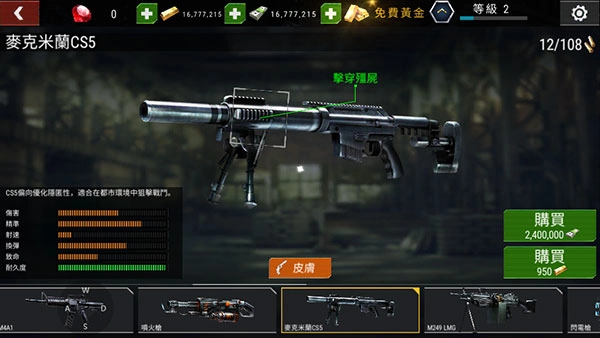 CS5榴弹枪:堪称爆头利器,尤其克制毒液与警察这类目标,不过它也存在射速偏慢、弹容量不多的短板。