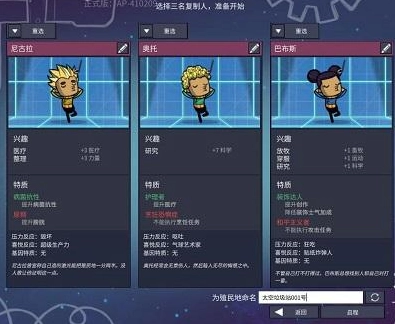 关于角色选择,游戏开局可招募三名复制人,每个复制人都具备独特的兴趣与特质。红色特质一般会产生负面作用,绿色特质则属于正面效果。建议挑选兴趣单一的复制人,因其属性加成更集中且高效。推荐的组合为:一名挖掘专家、一名建造专家和一名研究专家,无需专门设置厨师,烹饪任务可由其他角色兼顾。若选择拥有双重兴趣的角色,需留意他们的兴趣是否互补,比如挖掘与建造、操作与维护这类搭配。在游戏进程中,复制人升级时能自由分配属性点,但分配需谨慎,避免因属性值过高导致士气快速下滑,最好依据他们的主要职责来进行属性点分配。