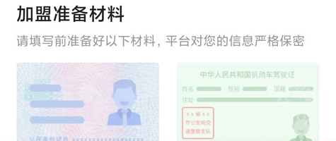 点击加盟,准备身份证、驾驶证等加盟材料。