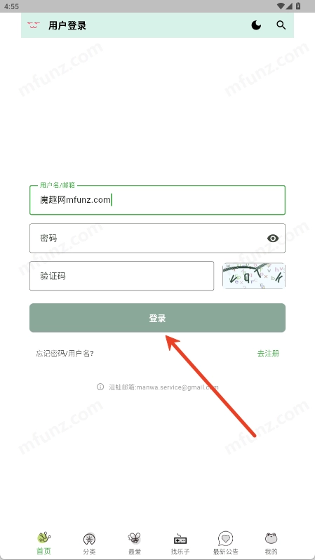 打开漫蛙3.0版本进入首页,点击右下角我的