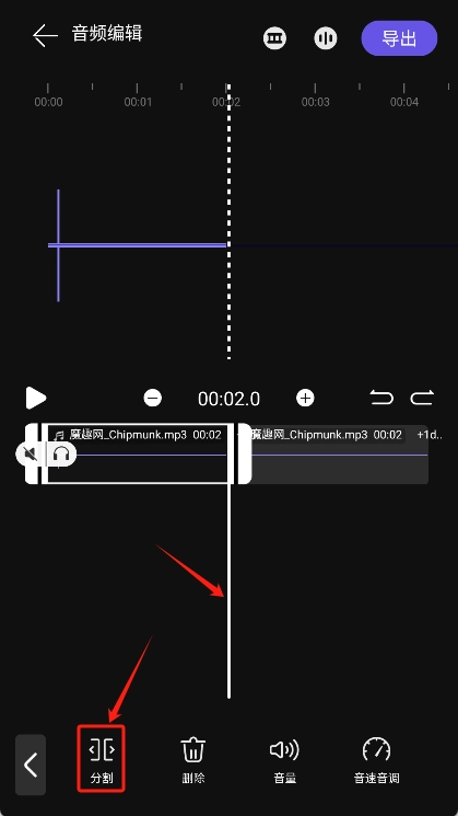接着通过拖动进度条并点击“分割”按钮,来截取所需的音频片段。