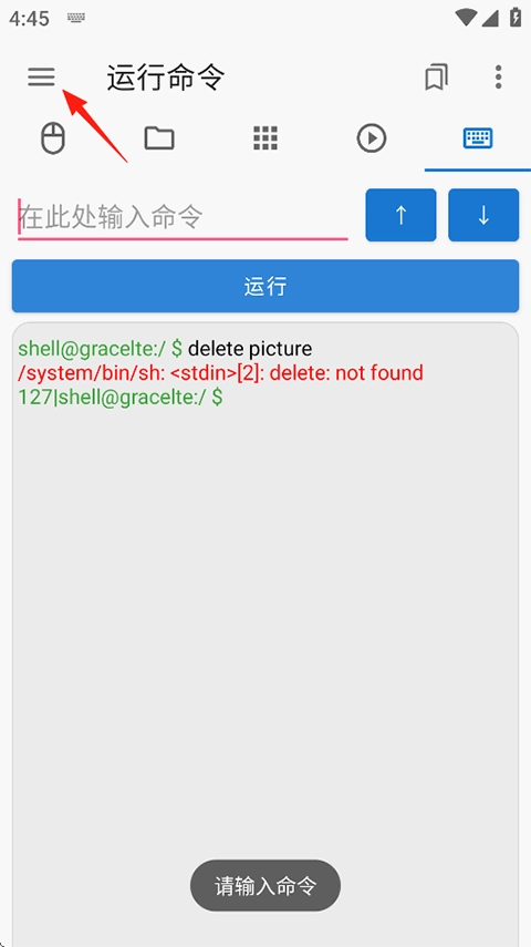 执行命令:通过输入指令来开展相关操作,点击左上角的三条横线展开按钮