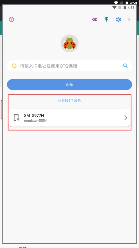 这时,我们在新设备上启动甲壳虫ADB助手,输入被控手机的IP地址与端口号,就能成功连接到该手机设备了。