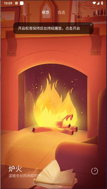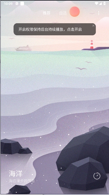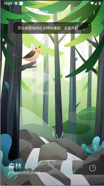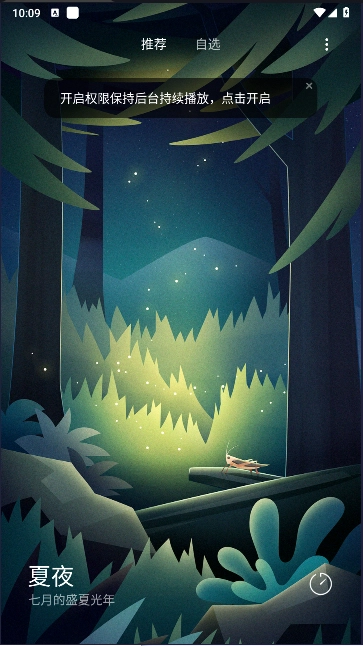 应用默认会推荐五个场景,分别是夏雨、森林、炉火、海洋和夏夜。