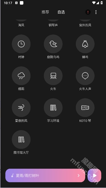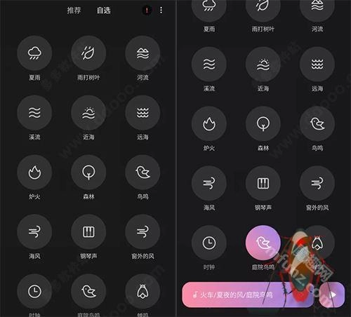自定义声音组合:用户能够借助“自选”功能,自主挑选并组合声音,最多可选取三种声音,还能依据个人偏好调整每种声音的音量,从而获得最惬意的体验。