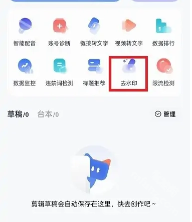 进入创作页面,点击“去水印”。