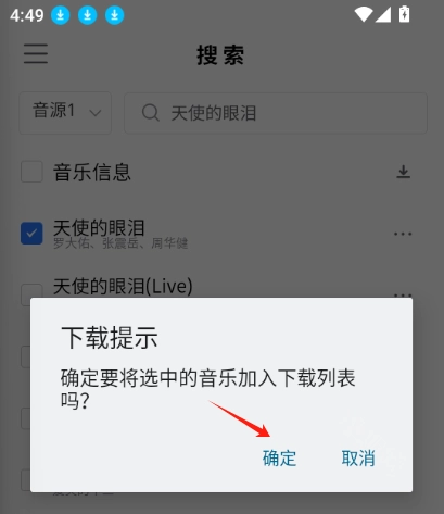 然后回到主界面,去搜索你想要的高品质音乐,在搜索结果里选中对应的音乐后,点击右上角的按钮就可以了。