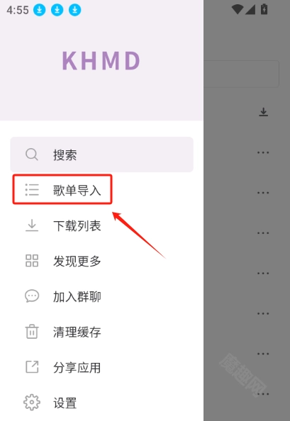 导入歌单:KHMD具备歌单导入功能,你可以点击左上角的三条横线图标,然后选择歌单导入选项来完成操作。