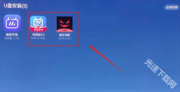 美家市场电视版的安装包,把它拷贝到U盘的根目录里,接着将存有创维版安装包的U盘插到电视的USB接口上。