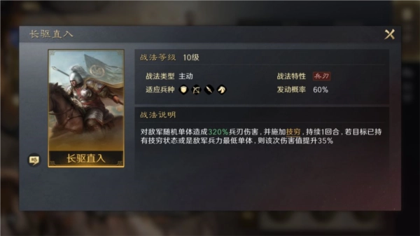 组合思路:【锐不可当】具备提升自身破甲能力与伤害输出的效果,所以和【长驱直入】配合使用时,就能实现更可观的伤害数值。