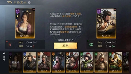 要是玩家们在游戏前期就抽到了更合适的武将,就能借助武将置换系统,对阵容里那些等级已经比较高的武将进行置换操作,从而得到更符合当下需求的武将阵容组合。