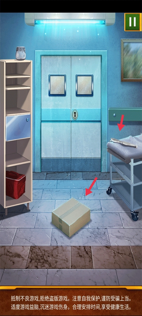 把手机朝右边倾斜一下,就会有个盒子掉出来,拿小刀把盒子划开,拿到钥匙后就能打开门了。