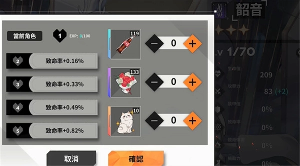 人物等级:等级越高角色属性越高。
