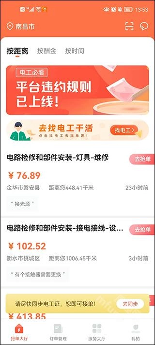 覆盖全国范围,附近工单及时推送提醒,电工师傅不会错过任何机会。